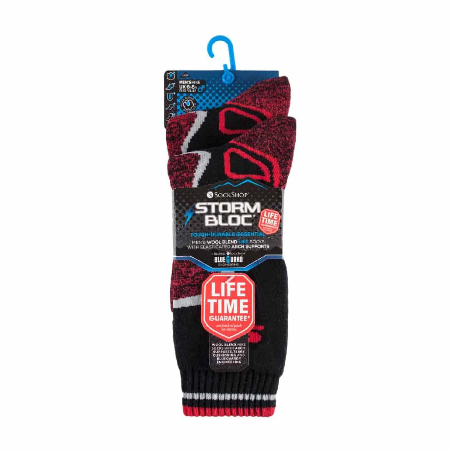 These socks are designed to be ultra-durable with Blueguard anti abrasion technology knitted into areas of the sock that would usually be prone to wear and tear. These include a reinforced heel and toe and front panel. Blueguard technology allows the sock to be 30x more durable than your average branded hiking sock.