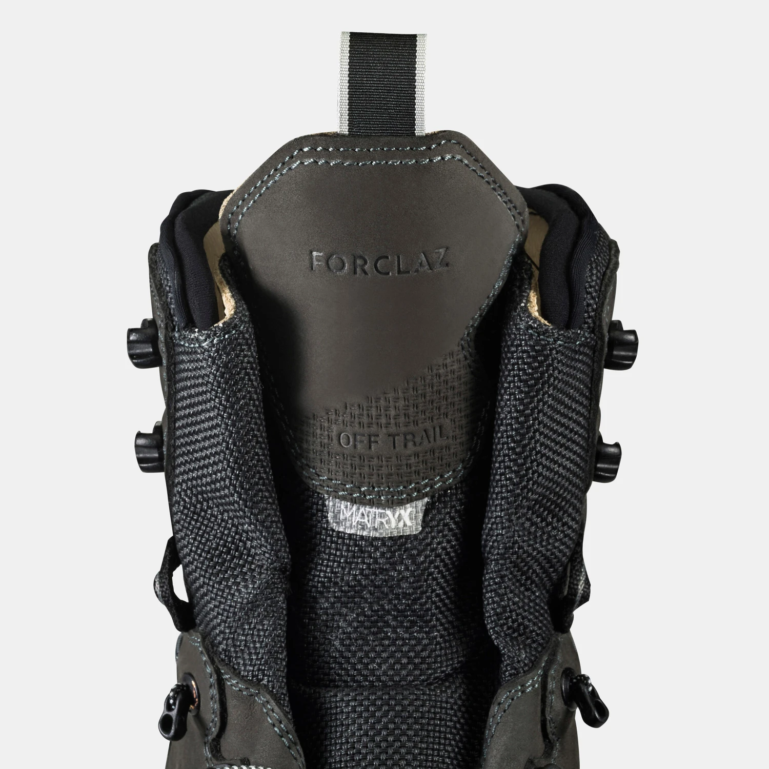 The top of the collar of the upper is made of a Matryx® EVO fabric, which is a jacquard with a built-in lining. Technical compound of a PA warp coated with 550DTEX PU and a PA weft coated with 550DTEX PU. A 167DTEX PES lining